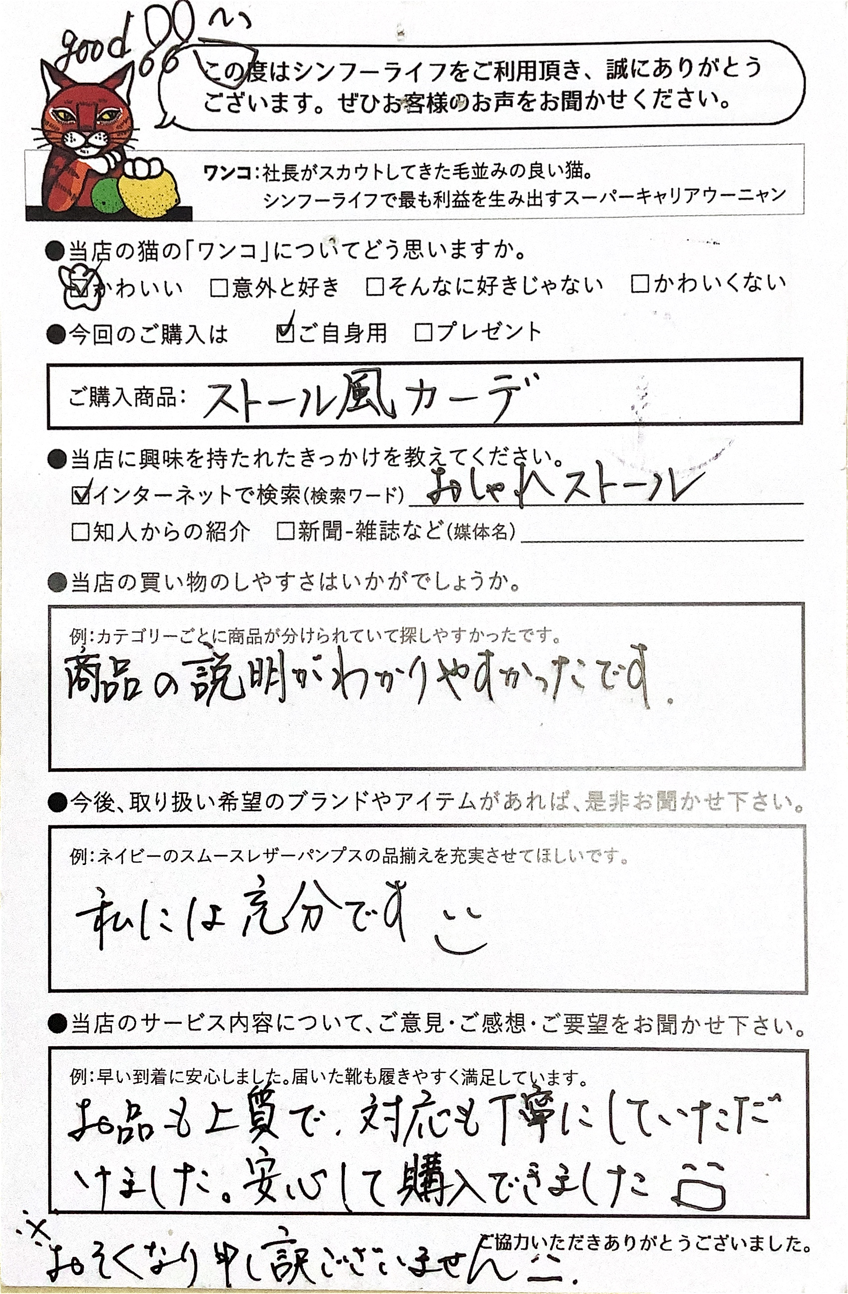 注文、返品の説明など丁寧に説明して下さりありがとうございました。![]() |