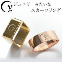 アンゴラスカーフの付属でイエローゴールドのオーバル、自分でピンクゴールドのスクエアを購入しました。指輪でも代用できそうですが、専用に作られたものはやはり使い勝手が大きく違いました。オーバルもスクエアも、円よりホールド力がありスカーフがずれません。特にオーバルはスカーフを平べったく抑えてくれるのでホールド力がある上に、スカーフを大面積見せられて、非常に見栄えが良いです。1cmくらいあるリングの幅が、小面積ながら磨き上げられた表面が非常に存在感があり、スカーフに高級感を添えてくれます。シルバーカラーがあったら、2タイプとも揃えたいです。