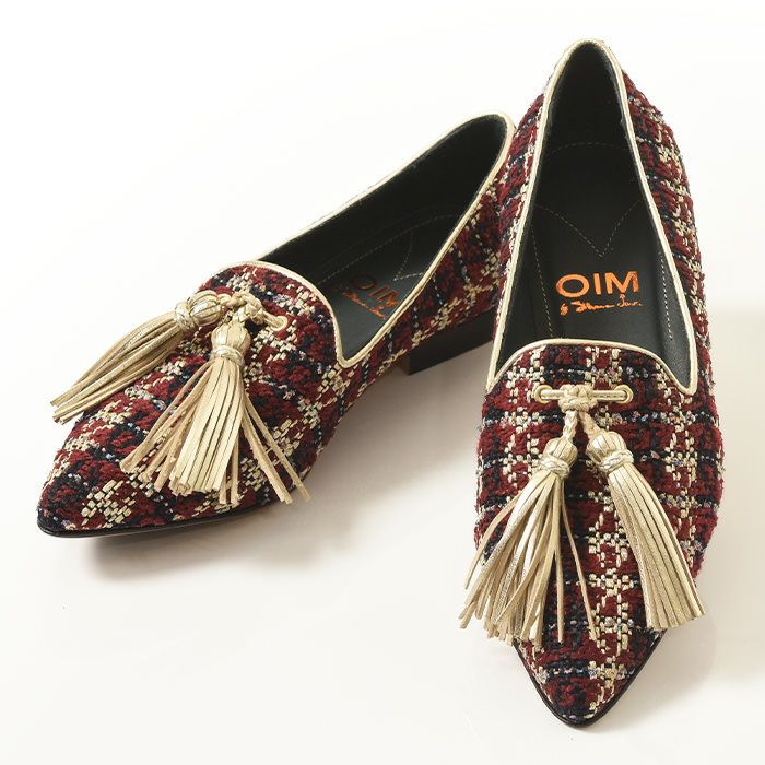 レザータッセルとファブリックが素敵すぎるオペラシューズ。ポインテッドトゥがお洒落な ローヒールで履きやすく 歩きやすい イタリアブランド OBJECTS IN MIRROR オブジェクツインミラーの高級フラットシューズ/ 23cm-25cm|ポインテッドトゥ オペラシューズ 本革 タッセル ファブリック素材 イタリア製 レッド 赤 ブラック 黒