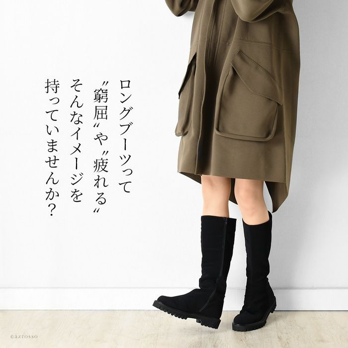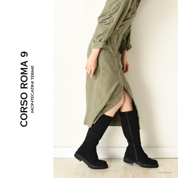 ストレッチ性抜群だから、ふくらはぎが苦しくない、CORSO ROMA 9(コルソローマ)のロングブーツ。太さが気になる人でもすっぽり入る。締め付け感ゼロで長時間の履いても疲れない 23cm-25.5cm│ストレッチ ロングブーツ 3.5cm ローヒール ブーツ イタリア製 ブランド CORSO ROMA 9 コルソローマ ノーヴェ 黒 ブラック
