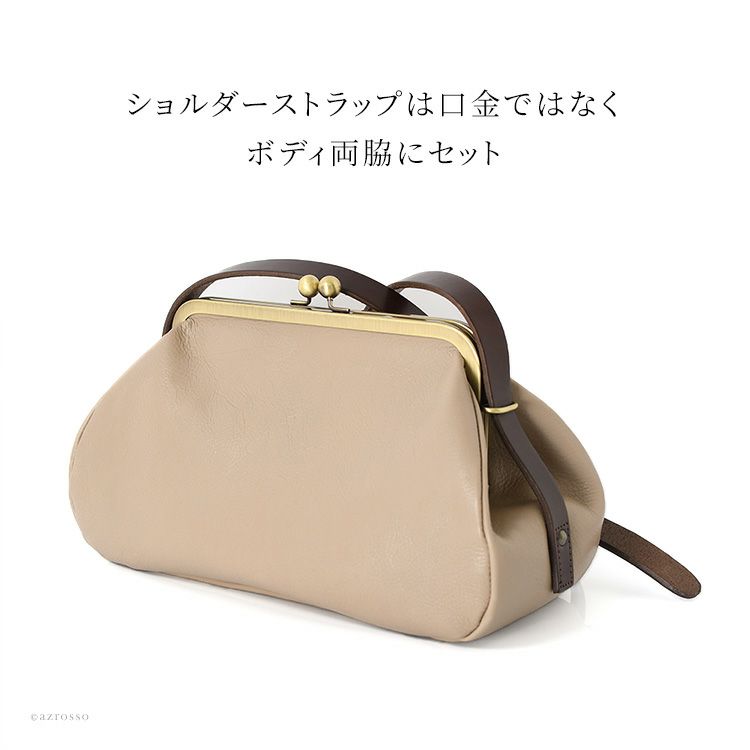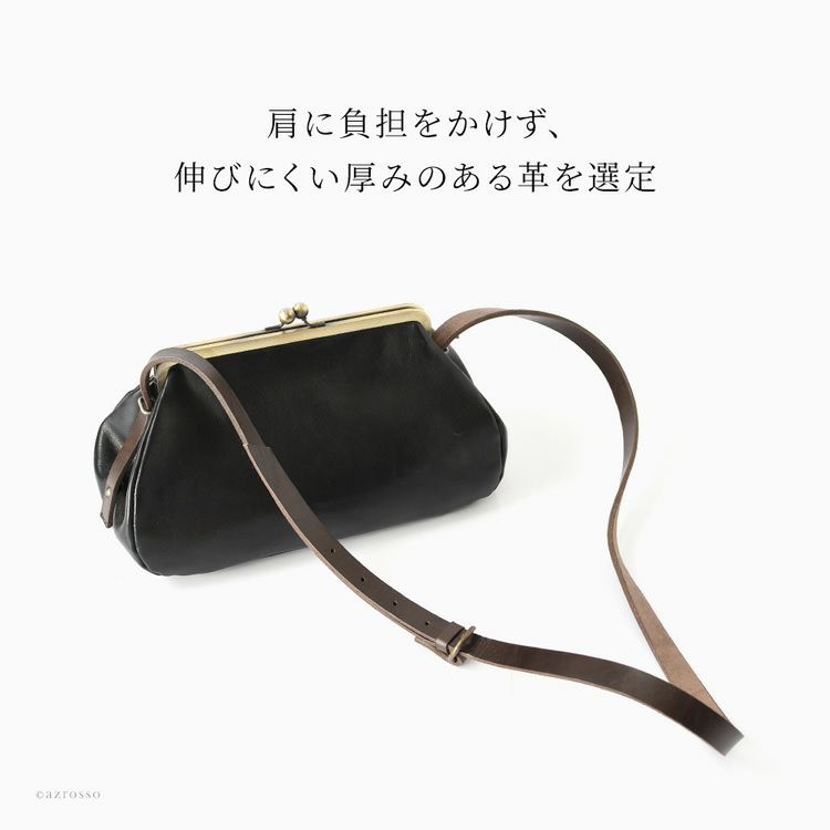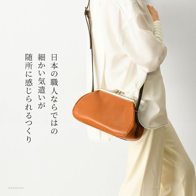安心のメイドインジャパン品質、スマートさ、クールさ、にがま口の可愛さをプラスした口金ショルダーバッグ。コンパクトなサイズながら、広めのマチで大容量。 がま口 口金 ショルダーバッグ 本革 日本製 レザー 横型 自立 大容量 肩掛け 斜めがけ 自立 ブラック キャメル オーク レッド 赤