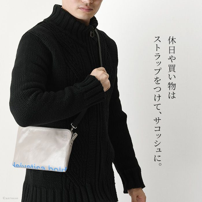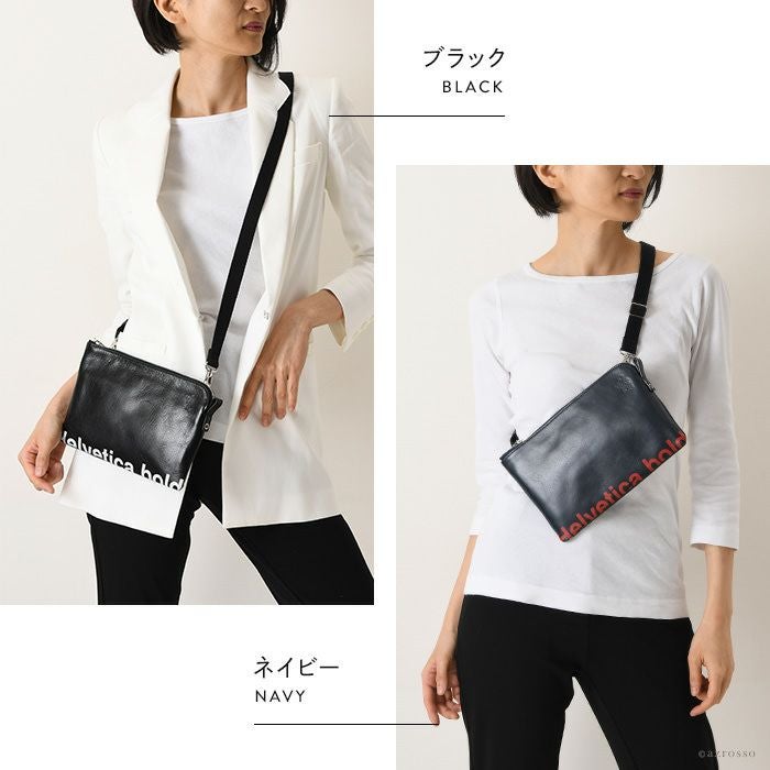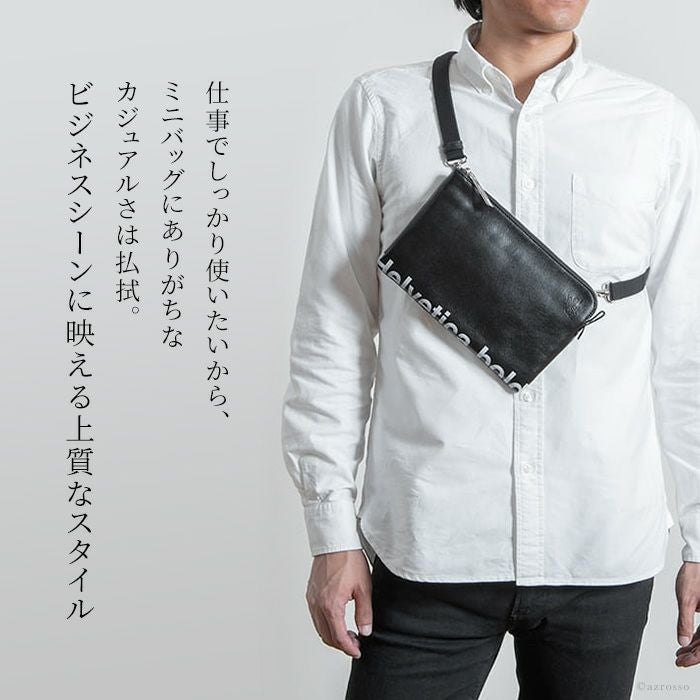 スマートにできる男の演出に最適なミニマルサコッシュ。高級感ある本革にスタイリッシュなブランドロゴをプリント。プレゼントにもオススメ 2way サコッシュ バッグ ショルダー レザー 軽量 バッグインバッグ 本革 メンズ 日本製 バッグ ブランド ヘルベチカボールド Helvetica bold