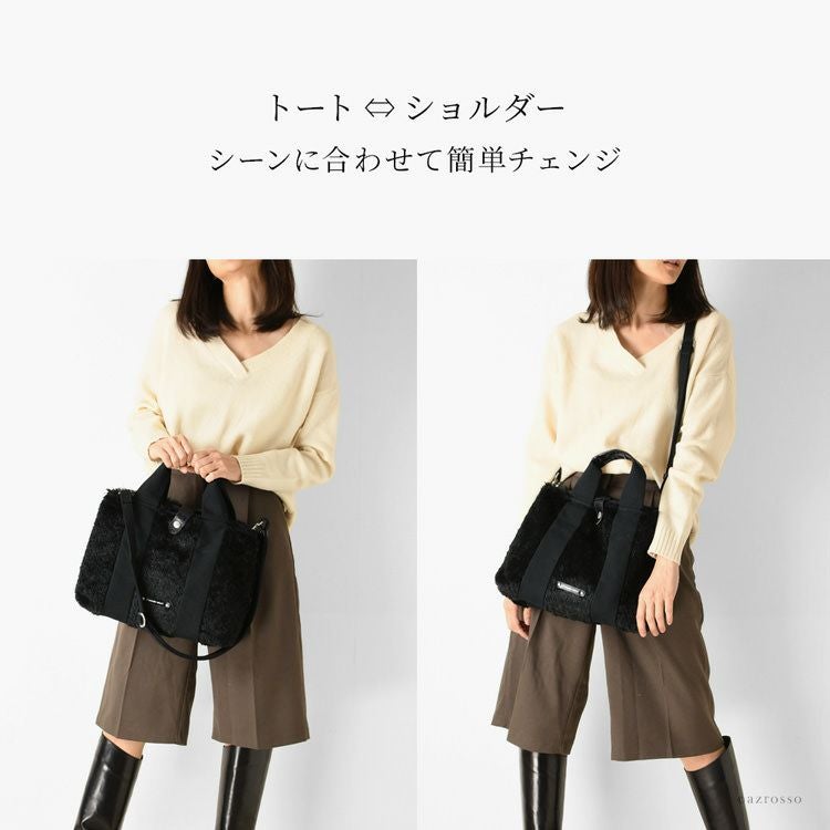 シリーズ累計販売数140個以上!究極に使いやすい2wayショルダートートComodo PlustのAlicia(アリシア)から、煌めくファーバッグが登場。持ち手やパーツは艶ある牛革を使用。生産1回の限定モデルです! 日本製 ミニ トートバッグ 500g以下 軽量 多収納 ファーバッグ 小さめ バッグ トート 斜めがけ a4 仕切り ミニバッグ 2way マザーズバッグ 斜め掛け 軽い 大容量 鞄 レディース