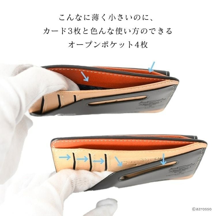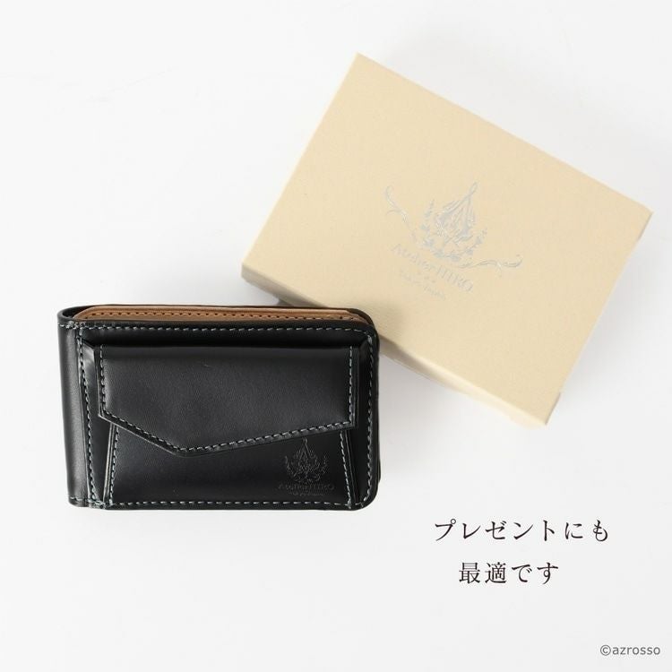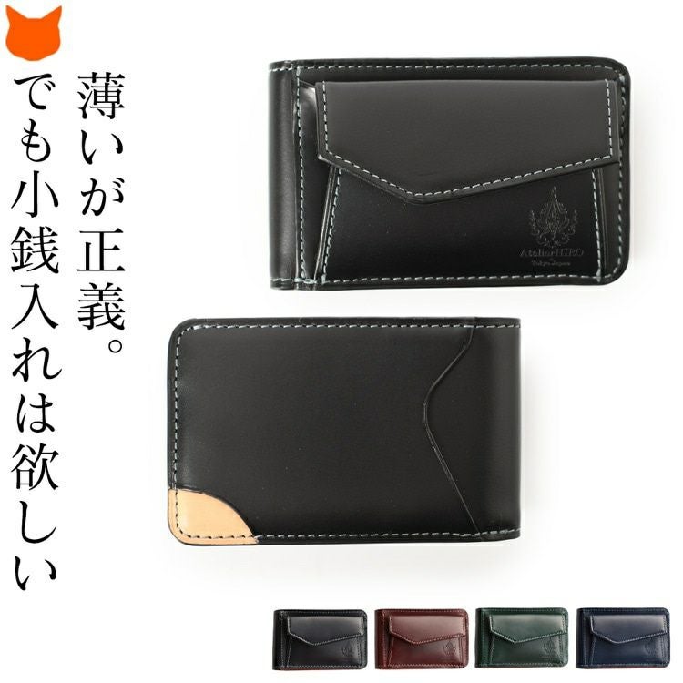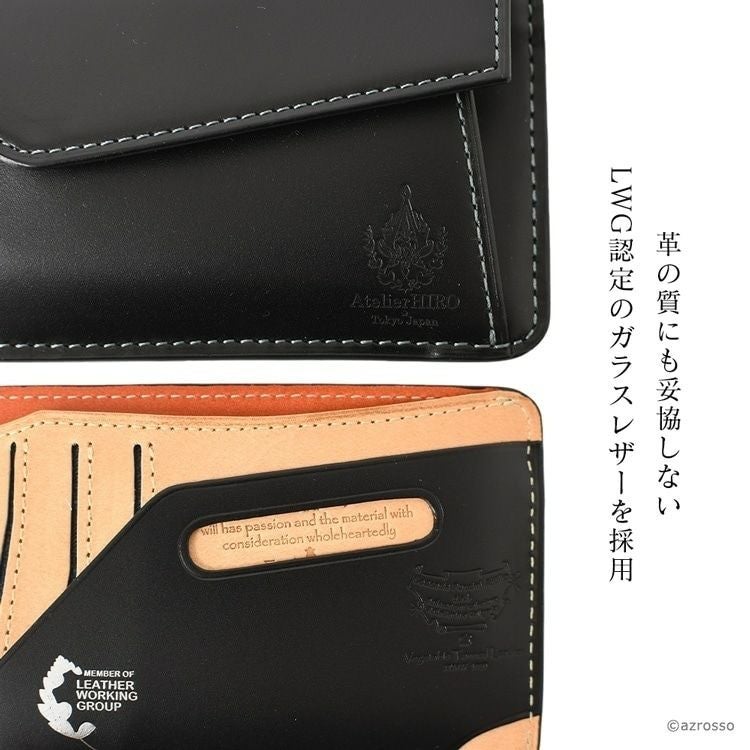 Zバッグを持たない人にもオススメの薄型、二つ折りのミニ財布。薄いのにお札も入って小銭入れあり。カード入れも多い。革にもこだわるAtelier HIRO(アトリエヒロ)の財布はプレゼントにも最適 ミニ財布 二つ折り財布 コンパクト 財布 薄い 小さい 革 小銭入れあり レザー 二つ折り ミニ 本革 黒 ブラック 緑 グリーン 青 2つ折り 薄型 シンプル スリム 折り財布 レディース メンズ