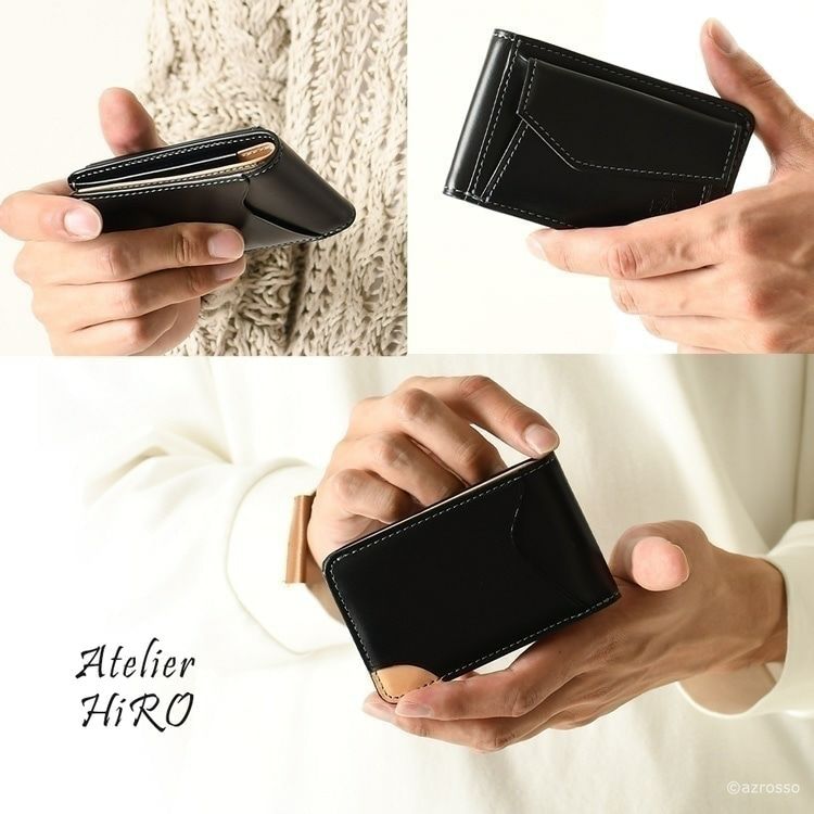 Z収納力抜群のコンパクトな二つ折り財布を手掛けるAtelier HIRO(アトリエヒロ)の逸品。薄型スリム、シンプルでかっこいい。美しい高級イタリアンレザー財布はプレゼントにも最適 財布 二つ折り 革 小銭入れ シンプル おしゃれ 二つ折り財布 黒 ブラック グリーン 2つ折り サイフ コンパクト 薄型 ミニ 折り財布 スリム 多機能 小さめ 薄い 折りたたみ ミニ財布 本革 レディース メンズ