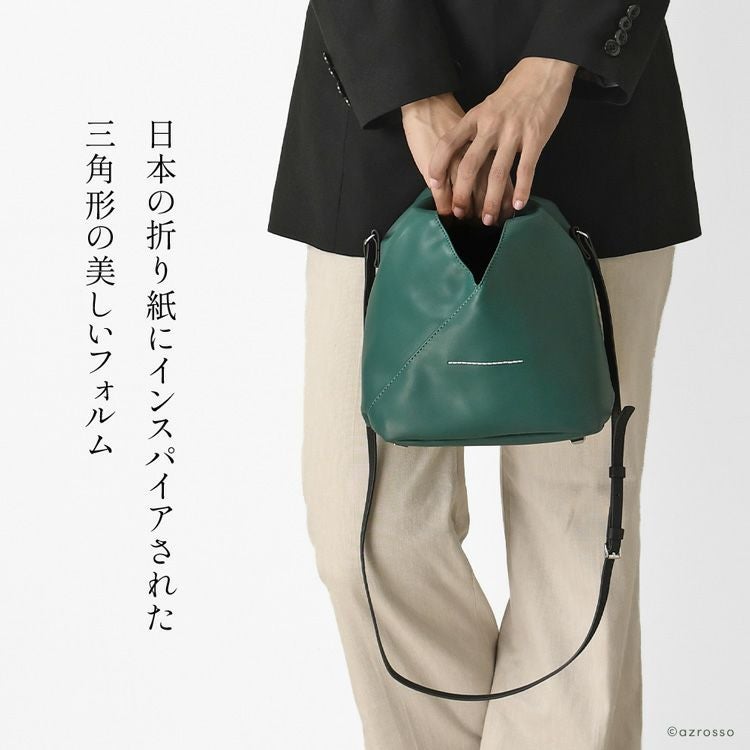 性別の壁を越えて愛され続けるMM6 Maison Margiela(エムエムシックス メゾン マルジェラ)の日本の伝統的な折り紙にインスパイアされた「ジャパニーズバッグ」という名の美しいショルダーバッグ「S54WD0106P4313」 mm6 Maison Margiela ジャパニーズ ショルダーバッグ フェイクレザー 三角形 ミニ 軽量 シンプル 緑 レディース ブランド エムエム6 メゾンマルジェラ S54WD0106P4313
