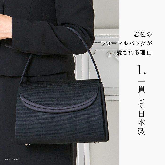 フォーマルのスペシャリスト「岩佐」が贈る弔事対応の純国産バッグ。精巧な織柄と深い黒・伝統の米沢織のフォーマルバッグはお葬式、告別式、仏事に最適 米沢織 フォーマルバッグ ブラック 黒 撥水 布製 インナーマグネット ハンドバッグ マチ広 バッグ 軽量 日本製 ブランド