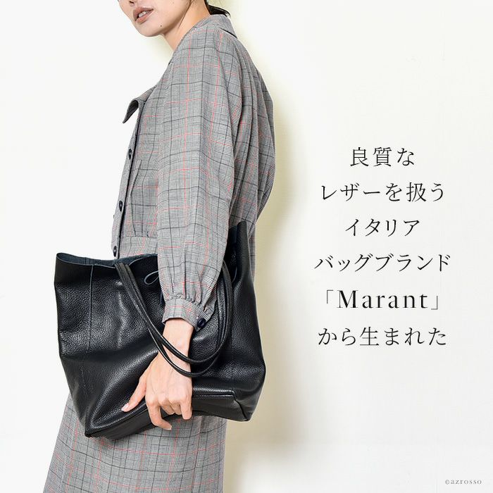 柔らかいレザーで仕立てた折り畳めるトートバッグをイタリアブランド marant(マラント)から。バッグ上部の紐を結ぶ洗練デザインで、ビジネス(通勤 出張)、旅行、結婚式のサブバッグとしても 折りたためる トートバッグ 本革 サブバッグ レザー a4 軽い 結び リボン 黒 イタリア製