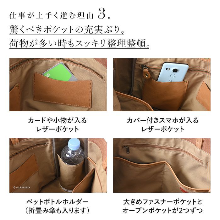 C'omodo+plust コモドプラスト|仕事がはかどる本革ビジネストート。軽い&大容量(A4収納、I Padも入る大きなポケット付き)。仕事 通勤用 外回り営業におすすめ 超軽量 レザー トートバッグ メンズ 日本製 本革 底鋲つきで自立 A4収納 コモドプラスト