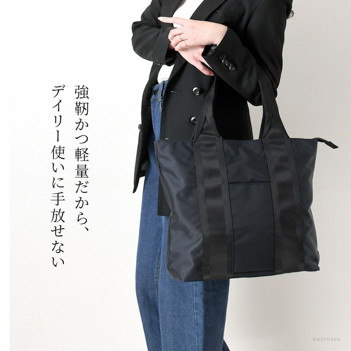 防弾ベストにも使う生地で作られた強靭かつ軽量な横長レディーストートバッグを日本の老舗鞄工房 服部(はっとり)から。A4サイズ楽々収納の大容量サイズ 横型 トートバッグ A4収納 軽量 ナイロン 大容量 ビジネスバッグ トートバッグ ネイビー 紺 日本製 レディース