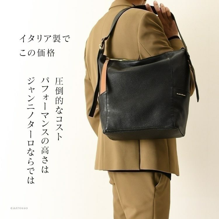 カッチリし過ぎないからビジネスもカジュアルも着まわせる イタリア産ジャニターロGianni Notaroの2wayショルダーバッグ 2way ビジネス ショルダー バッグ 本革 A4 メンズ イタリア製 ブランド レザー カジュアル 仕事 黒 ブラック 茶色 キャメル 肩掛け 外ポケット ファスナー 仕切り 軽量