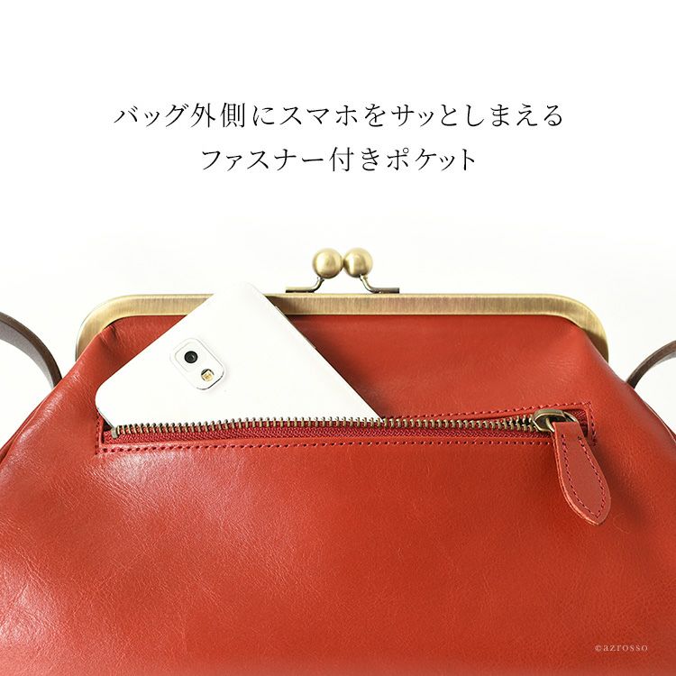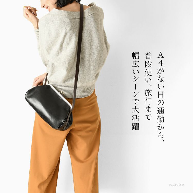 安心のメイドインジャパン品質、スマートさ、クールさ、にがま口の可愛さをプラスした口金ショルダーバッグ。コンパクトなサイズながら、広めのマチで大容量。 がま口 口金 ショルダーバッグ 本革 日本製 レザー 横型 自立 大容量 肩掛け 斜めがけ 自立 ブラック キャメル オーク レッド 赤