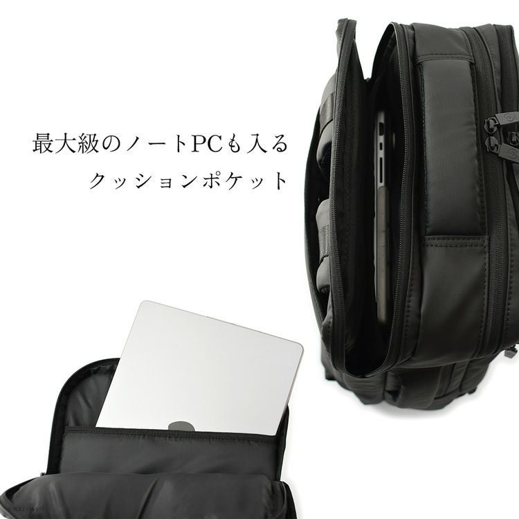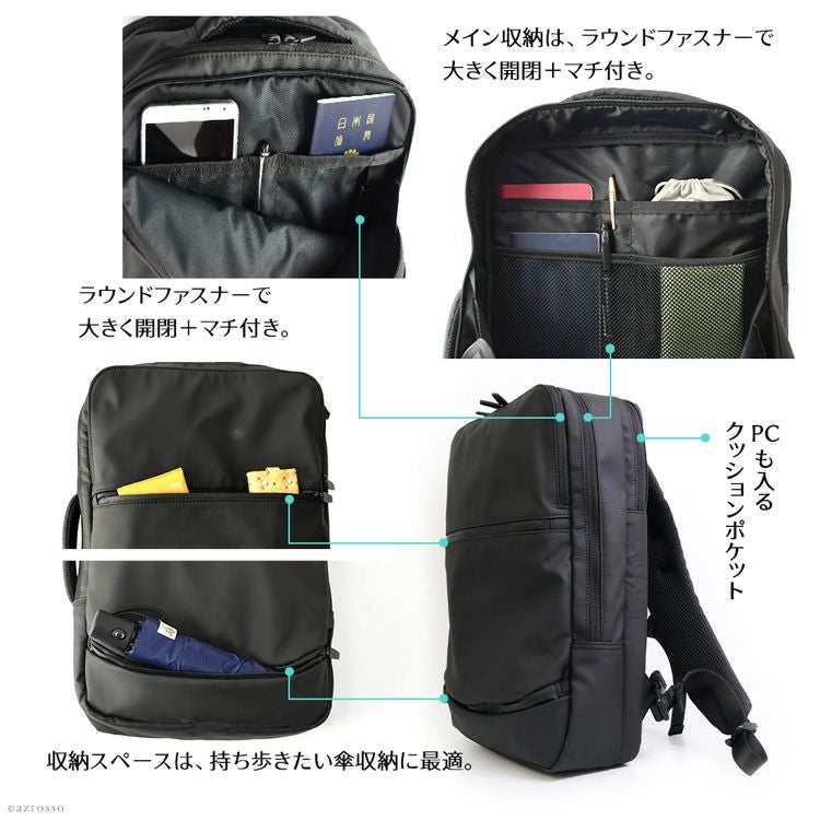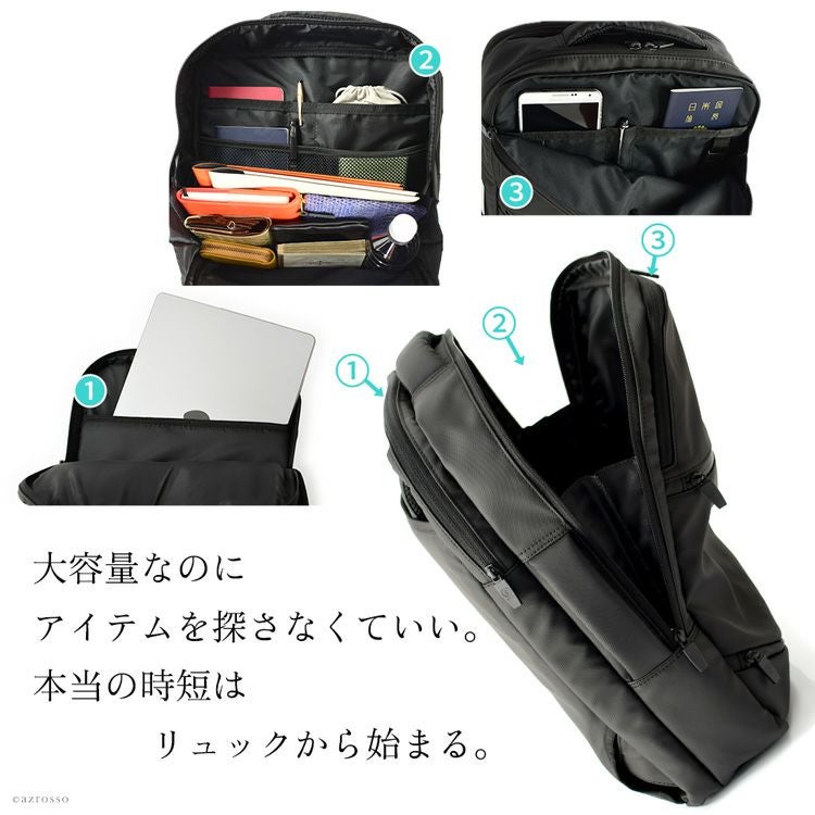 ガバッと開いて使いやすい多機能PCリュック。防水ナイロン素材だからビジネスバッグとしても最適。充実ポケットで整理しやすく収納上手なSMLの通勤用バックパック。 2way リュック ビジネスバッグ レディース 大容量 収納 多機能 SML スクエア ブラック ポケット 多め 大きめ PC 対応 パソコン ナイロン