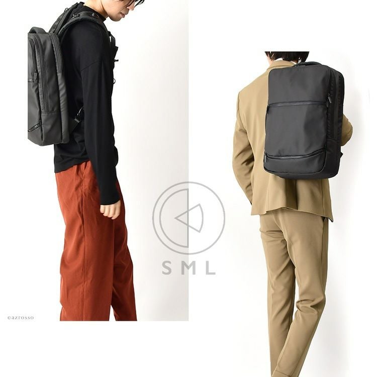 ガバッと開いて使いやすいメンズリュック。スクエア型のシルエットだからビジネスバッグとしても最適。充実ポケットで整理しやすく収納上手なSMLの通勤用バックパック。 2way リュック ビジネスバッグ 大容量 収納 多機能 SML スクエア ブラック ポケット 多め 大きめ PC 対応 パソコン ナイロン