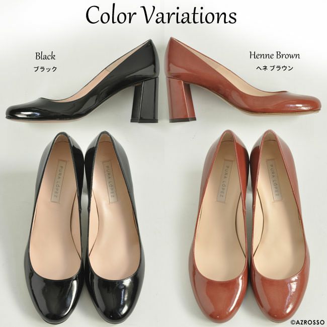 ※特価の為返品・キャンセル・交換無料サービス対応不可。※交換対応は、通常販売時のお買い物通りのご案内です。※サイズ交換希望で、ご交換希望サイズが欠品の場合は返品不可 22cm-25cm│6cm チャンキーヒール エナメルパンプス PURA LOPEZ プーラロペス スペイン製