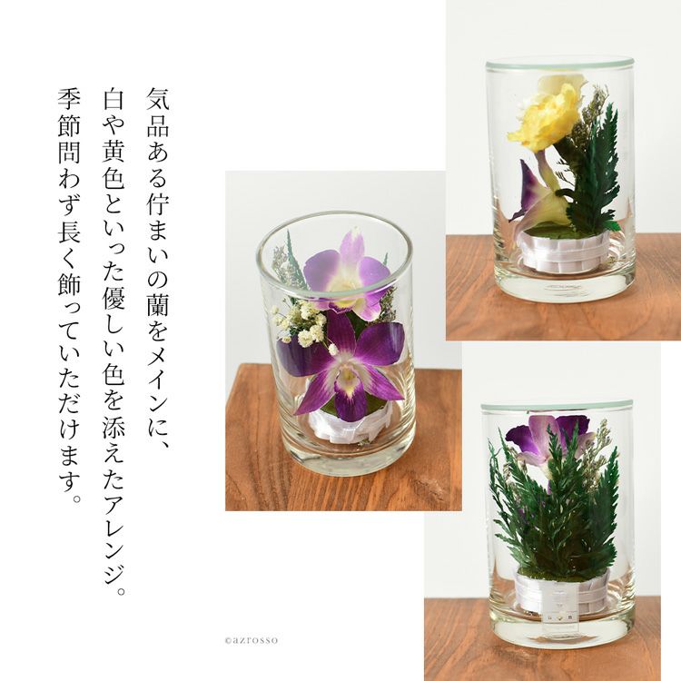 大切な人を偲ぶお花は本物の美にこだわった仏花を選びませんか。自然の華やかさが半永久的に続くプリザーブドフラワーアレンジメント。枯れない・お手入れ不要でお供えやお悔みの献花としても喜ばれるグラスフラワー 仏花 プリザーブドフラワー アレンジメント 仏壇用 グラスフラワー ガラスドーム ボトルフラワー ペット お供え 手元供養 お悔み 花 メモリアル フラワー 枯れない
