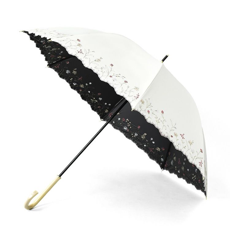 優美な花柄刺繍がエレガントな晴雨兼用日傘「ガーデンフラワー」完全遮光とUVカットで、紫外線カット。UPF50。裏地黒は遮光性を高め、照り返しを防止。上品スタイルが叶う、8本骨で丈夫な長傘タイプ 刺繍日傘 晴雨兼用 長傘 遮光100 完全遮光 レディース UVカット100 裏地黒 遮熱 upf50 花柄 おしゃれ かわいい 母の日 プレゼント ギフト