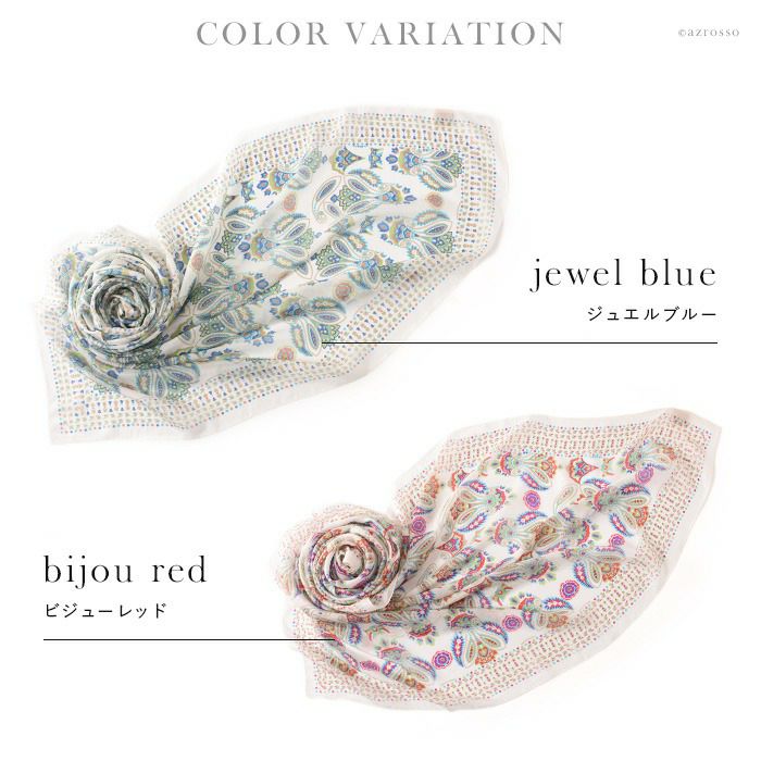 伝統のシルクスクリーン(手捺染)で染め上げた、カラーズデオトノのカシミール柄(ペイズリー柄)ストール。ショールとしても使える大判サイズ。母の日プレゼントや誕生日ギフトに カシミール柄 シルク大判ストール 春夏 ショール COLORS DE OTONO
