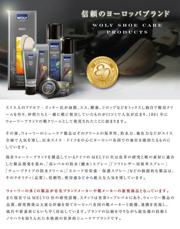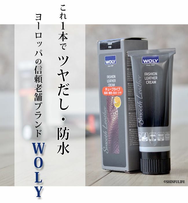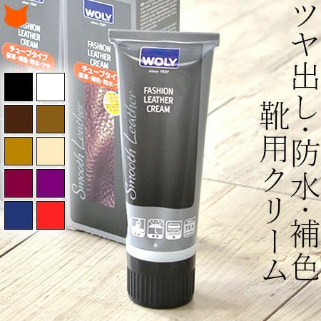 これ1本でツヤだし・防水。WOLY(ウォーリー)ファッションレザークリーム/スムースレザーの靴、バッグの補色・ツヤだし/ WOLY(ウォーリー)ファッションレザークリーム
