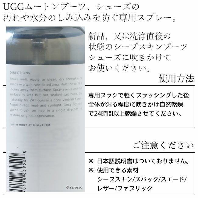 ムートンブーツ スエードのシューズをキレイに長く履くためのお手入れグッズ 履く前にスプレー UGG Australia シープスキン スエード専用防水スプレー。汚れ 塵除け シューズ ケア用品 撥水 アグ オーストラリア/ ムートン スエード 防水スプレー UGG Australia アグ オーストラリア シューズ ブーツ 靴 お手入れ ケア 撥水