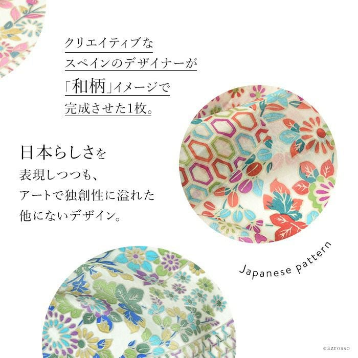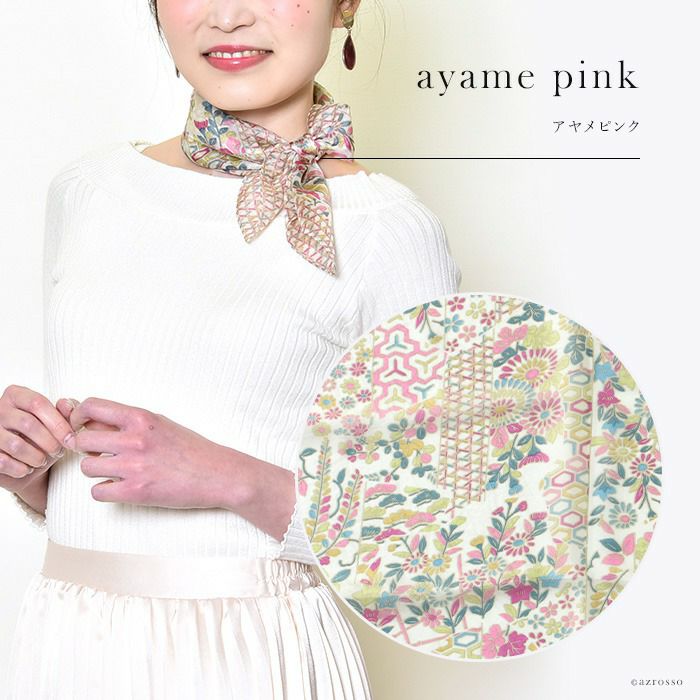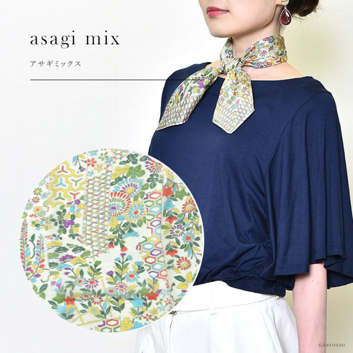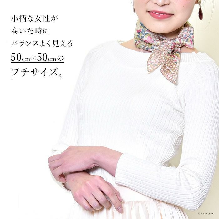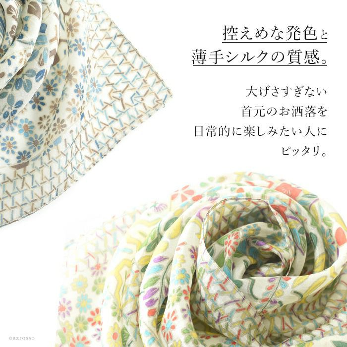 カラーズデオトノが贈る 伝統のシルクスクリーン(手捺染)で染めた日本女性の為のミニスカーフ。落ち着いたパステル調のシルクスカーフは母の日プレゼントや誕生日に シルク100 ミニスカーフ 小さめ 薄手 プチスカーフ 春夏 COLORS DE OTONO