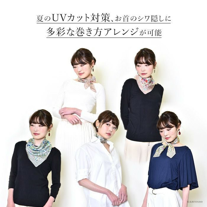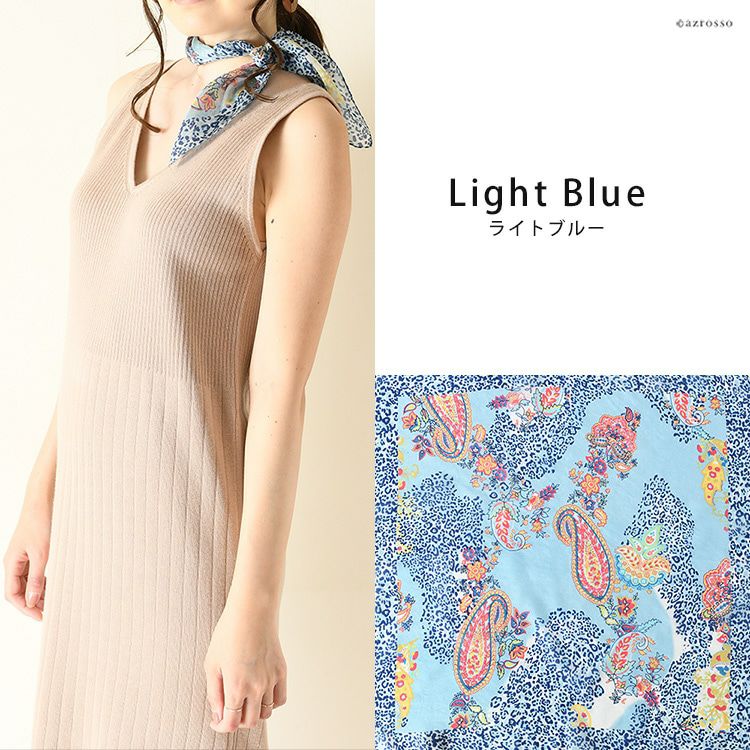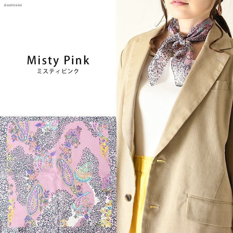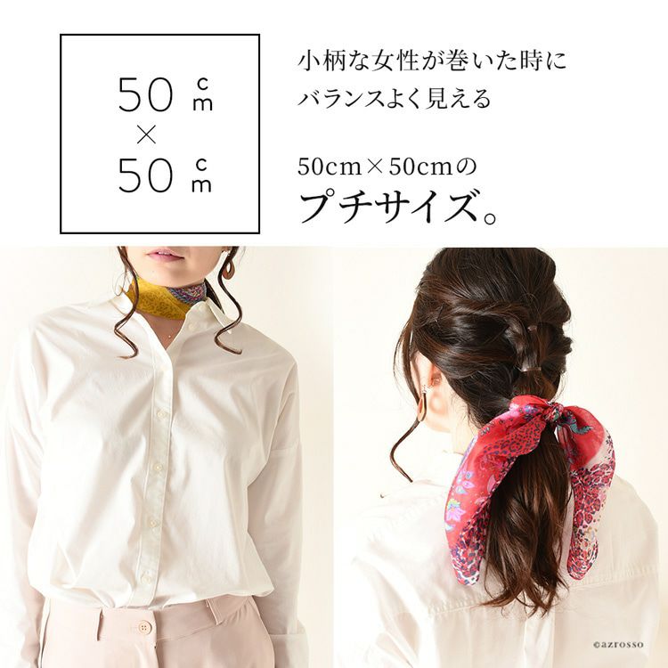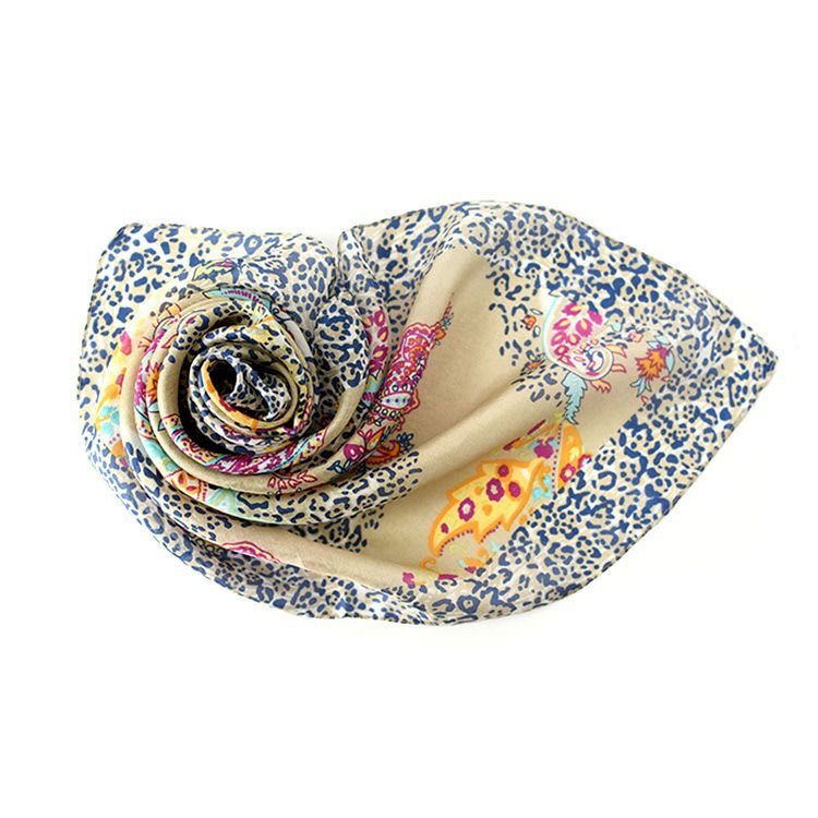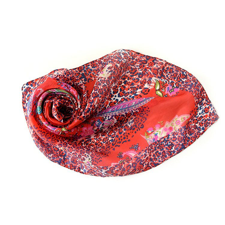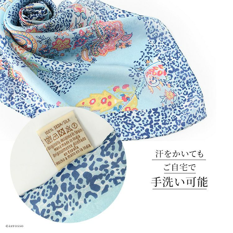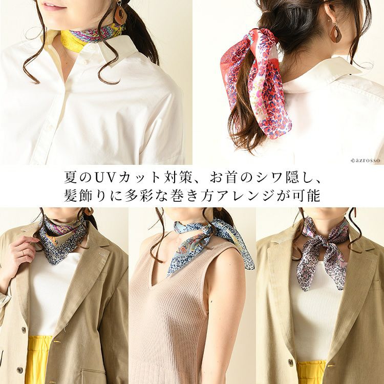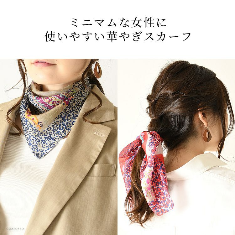 伝統のシルクスクリーン(手捺染)で染めた日本女性の為のミニスカーフ。ヘアアクセとしても使いやすい小さいサイズ。母の日プレゼントや誕生日ギフトにおすすめ 50×50|ミニスカーフ シルク100% 薄手 スカーフ 小さめ プチスカーフ カラーズデオトノ COLORS DE OTONO レディース ヒョウ柄 ペイズリー柄