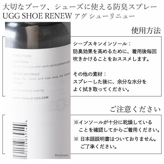 お気に入りのムートンブーツ、レザーシューズを清潔に長く履くための防臭スプレー。スエード、ファブリック問わず使えるシューケア用品/ UGG SHOE RENEW 消臭スプレー アグ シューリニュー 正規品 靴 お手入れ 清浄剤 防臭 ケア