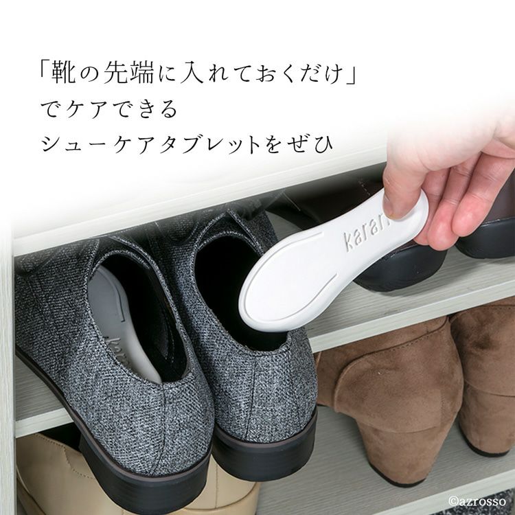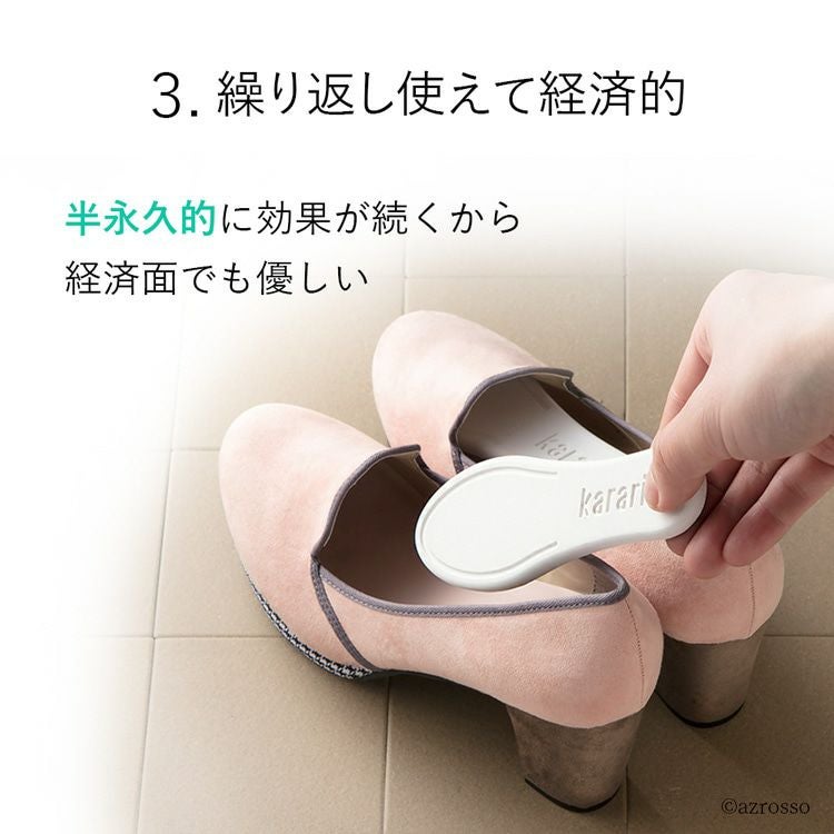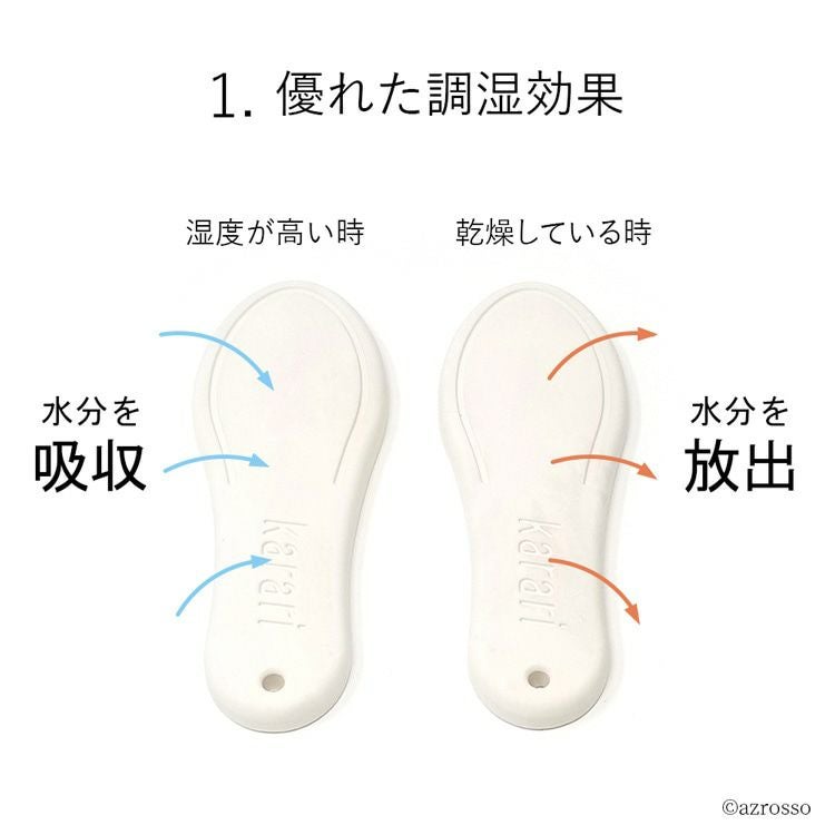 炭並みの強力な消臭力で臭いを抑え、湿度に合わせて靴内部を調湿してくれる珪藻土シューズケアタブレット。半永久的に続く効果でコスパ抜群。汗でムレたパンプスやスニーカー、湿気のこもったブーツ等に 珪藻土 シューズケアタブレット 靴 消臭 調湿 繰り返し使える karari カラリ シューケア用品【通常ネコポス配送】