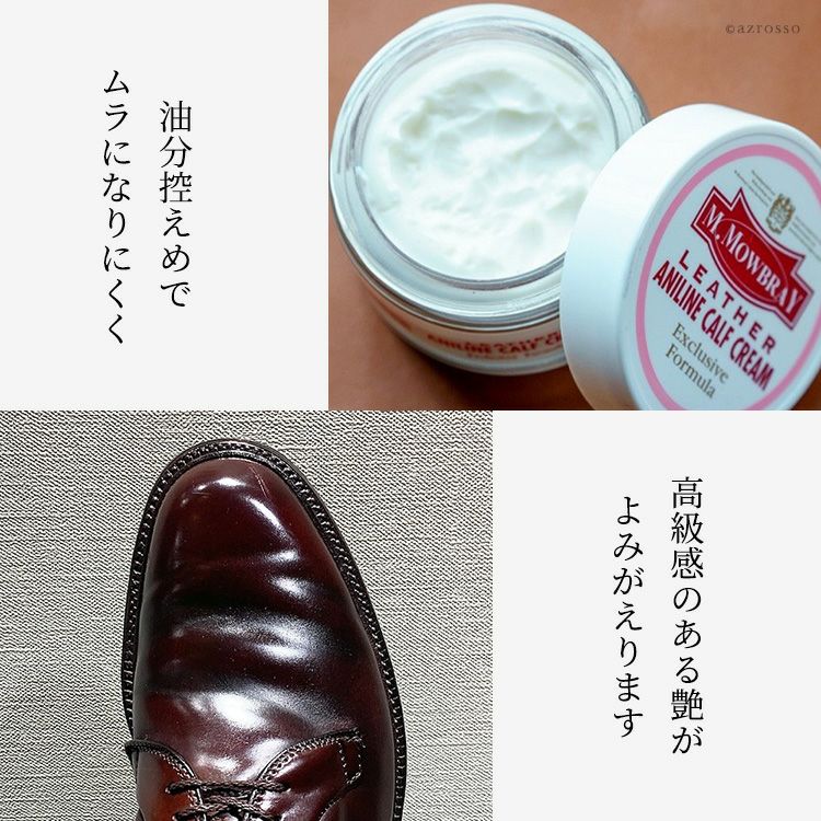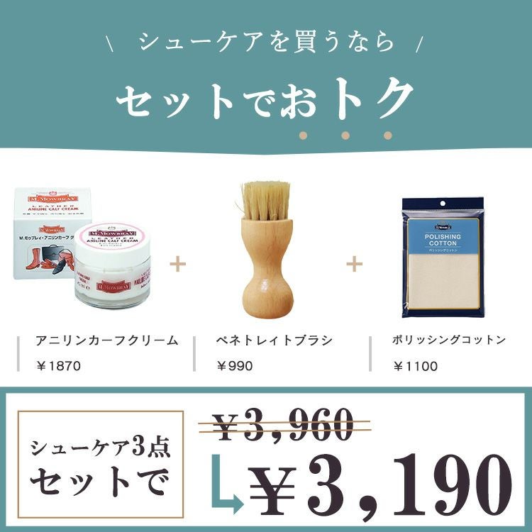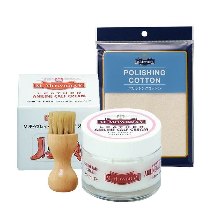 ヨーロッパで人気のシューケアブランド、M.MOWBRAY(モウブレイ)のアニリンカーフに使用できる万能栄養クリーム。ブラシとクロス付き靴磨きセット モウブレイ アニリンカーフクリーム レザークリーム ブラシ クロス 靴磨き 皮革 革靴 保湿 栄養補給 手入れセット M.モゥブレィ M.MOWBRAY 靴ケア お手入れ 梅雨対策 革 スムースレザー ケア クリーム