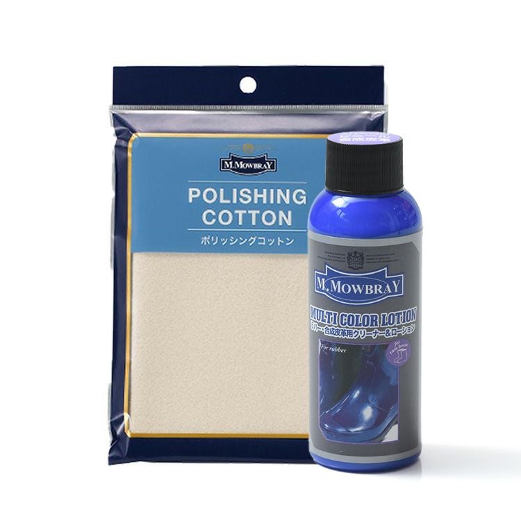 ヨーロッパで人気のシューケアブランド、M.MOWBRAY(モウブレイ)の劣化が早いラバー製品や合皮の寿命を伸ばす、ラバー専用のマルチカラーローションとポリッシングコットンクロスのセット モウブレイ マルチカラーローション 100ml 汚れ落とし ラバー 靴磨き ポリッシングコットン クロス 合成皮革 手入れセット M.モゥブレィ M.MOWBRAY 靴ケア お手入れ ツヤ出し 合皮 ビニール 劣化予防