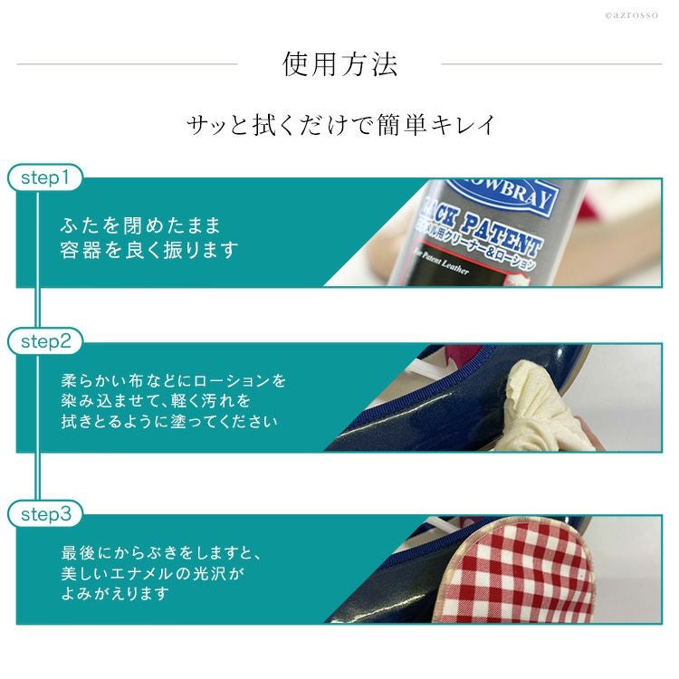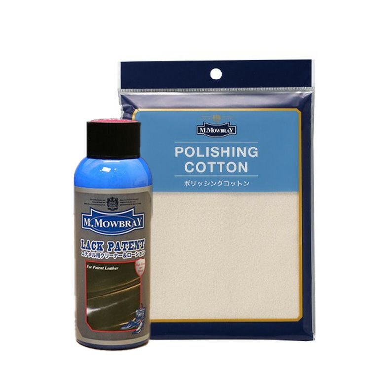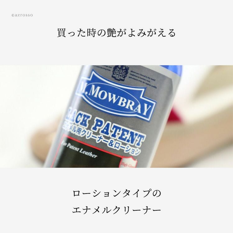 ヨーロッパで人気のシューケアブランド、M.MOWBRAY(モウブレイ)のエナメル専用汚れ落としローションセット。コットンクロス付き靴磨きセット モウブレイ ラックパテント エナメルレザー汚れ落としクリーナー M.MOWBRAY コットン クロス 靴磨き 皮革 パテント 革靴 保湿 栄養補給 手入れセット M.モゥブレィ 靴ケア お手入れ 梅雨対策 革 ひび割れ 予防