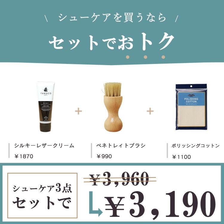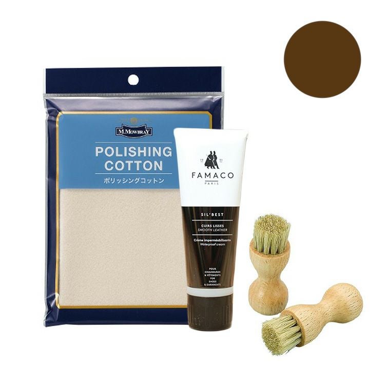 ヨーロッパで人気のシューケアブランドのスムースレザー用補色栄養クリームセット。革の保湿・艶出し・補色・防水に効果的なチューブタイプ乳化性クリーム。専用ブラシやポリッシングコットン付き。 ファマコ シルキーレザークリーム モウブレイ ペネトレィトブラシ スムースレザー 補色 保革 栄養クリーム ブラシ 靴 皮革 革靴 栄養補給 防水 手入れセット M.モゥブレィ M.MOWBRAY 靴ケア お手入れ 梅雨対策