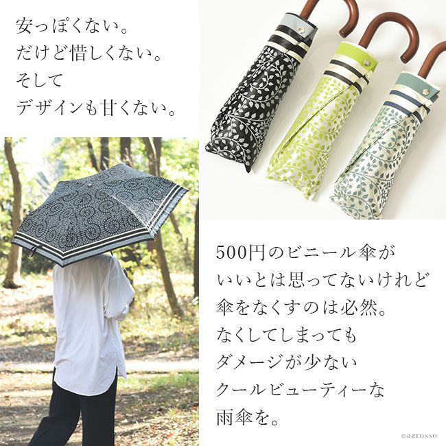 クールでかっこいい大人の女性の為の雨傘ブランド「Lluvia rain(ルビアレイン)」の幾何学模様のような葉の柄折り畳み傘「リーフボーダー」 リーフ ボーダー 折りたたみ傘 大判 軽い レディース 女性用 簡単 開閉 丈夫 サテン生地 おしゃれでスタイリッシュな雨傘はギフトにもおすすめ