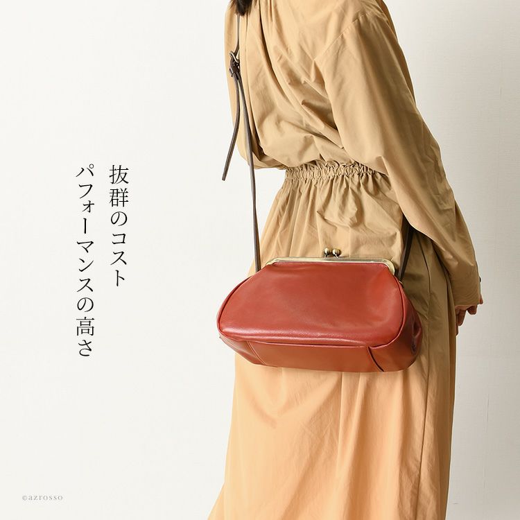 安心のメイドインジャパン品質、スマートさ、クールさ、にがま口の可愛さをプラスした口金ショルダーバッグ。コンパクトなサイズながら、広めのマチで大容量。 がま口 口金 ショルダーバッグ 本革 日本製 レザー 横型 自立 大容量 肩掛け 斜めがけ 自立 ブラック キャメル オーク レッド 赤