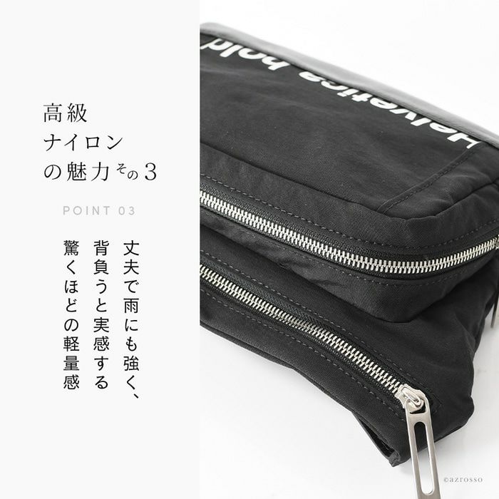 東京下町、信念のある工場からお届けする高級ナイロンボディバッグ。一般的なナイロンには出せない、糸に膨らみを持たせたハリコシ感。丈夫で雨に強い、驚くほど軽いメンズバッグです 高級ナイロン ボディバッグ メンズ ウエストポーチ バッグ 日本製 バッグ ブランド ヘルベチカボールド Helvetica bold ブラック カーキ ネイビー