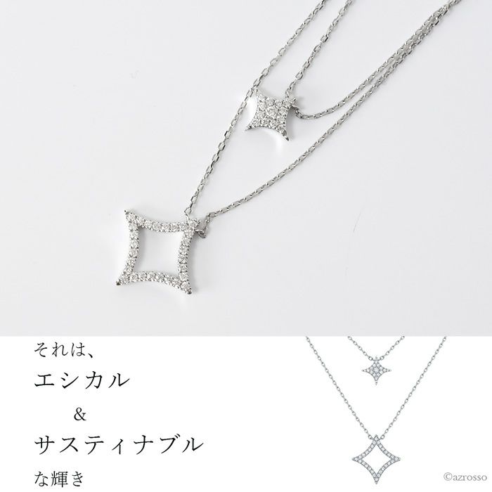 意外と難しいネックレスの重ねづけ。簡単に胸元が華やかになる2連タイプ【SMILING ROCKS】 2連 ダイヤモンド ネックレス 10k ホワイトゴールド 0.32カラット ラボグロウンダイヤモンド