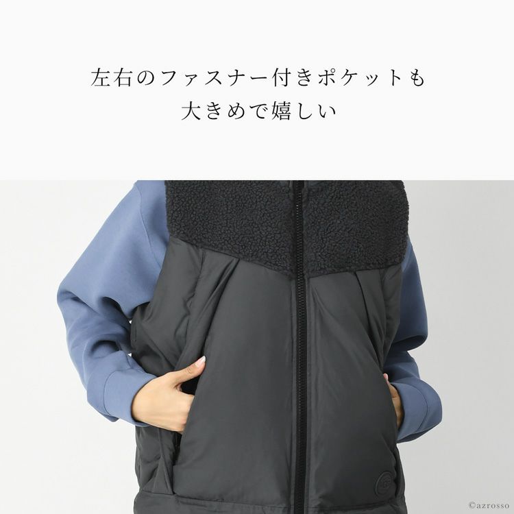 ふっくら軽やかに羽織れるUGG(アグ)のレディースパファーベスト。ヨーク部分のふわふわシェルパフリースがアクセントに。大きめファスナーポケット付きの季節の変わり目に重宝するライトアウター パファー ベスト レディース アウター ジャケット 軽量 春 ライトアウター ブランド UGG Zoltan 正規品
