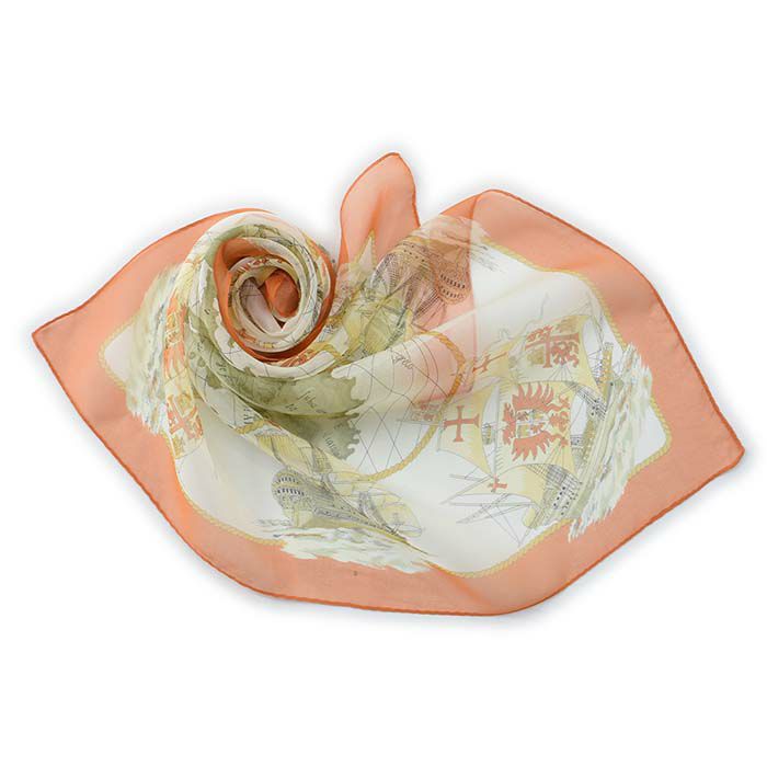 世界トップレベルの技法で紡ぐ横浜スカーフ シルク100の上質スカーフは誕生日プレゼントやお祝いギフトにもおすすめ 横浜スカーフ ユーラシア 90cm シルクサテンストライプ 日本製 正方形 人気の航海図