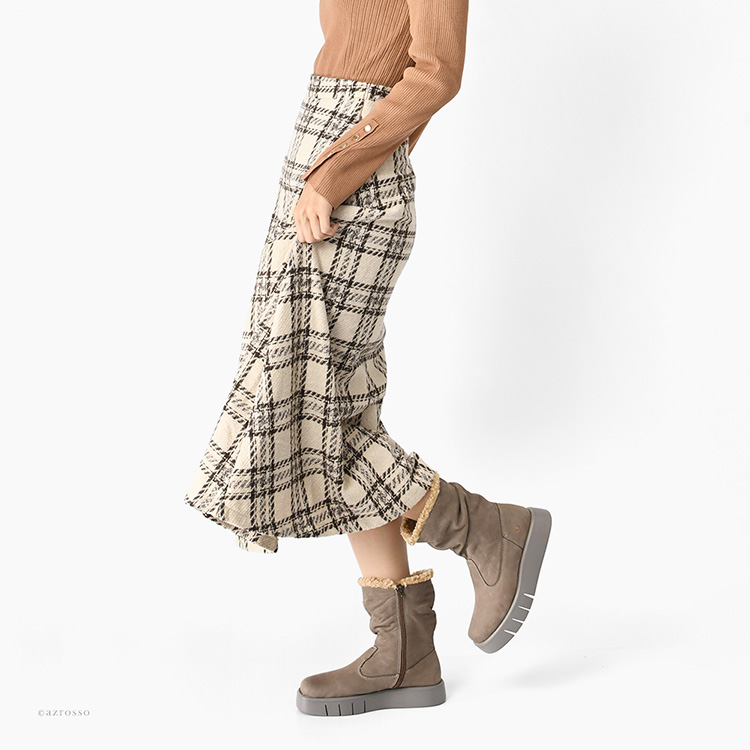 足首をすっきり見せるくしゅっとしたシルエットに、ふわりと覗くファーが季節感を漂わせます。