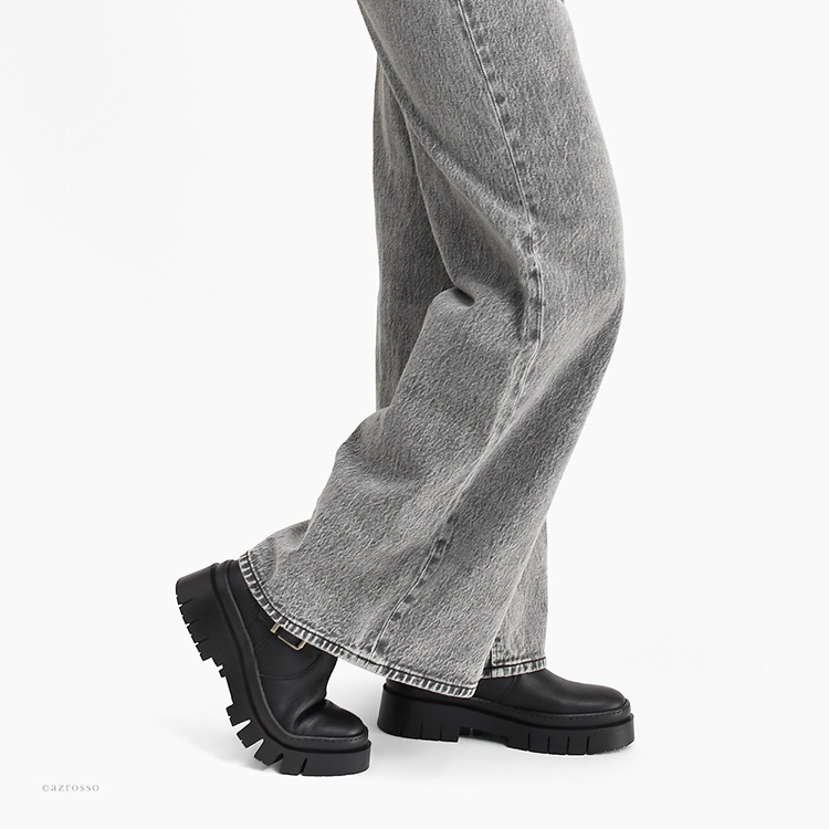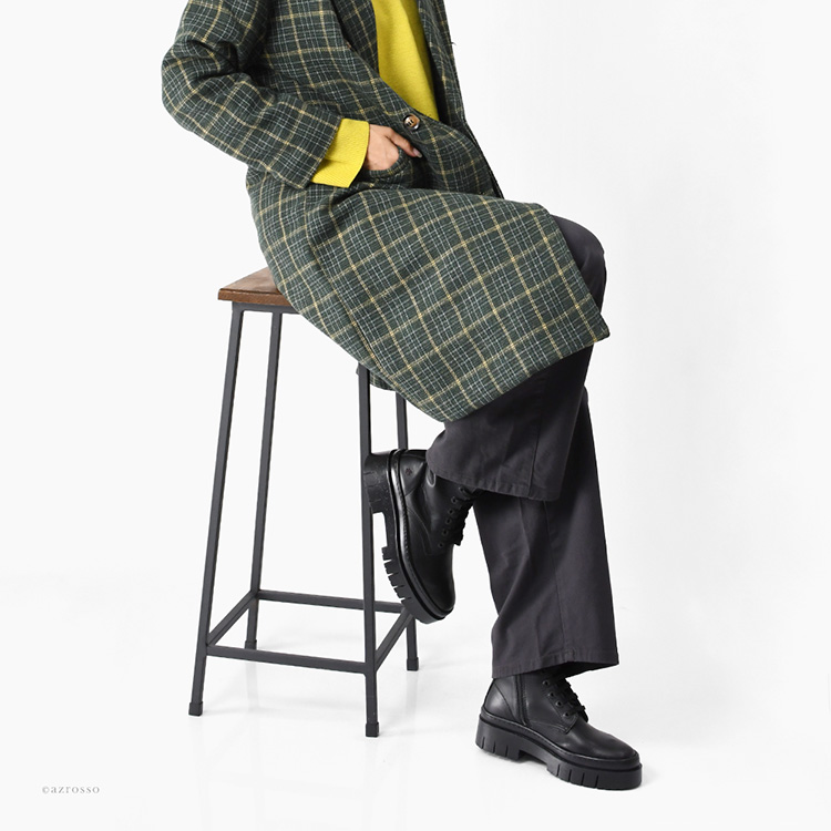 レースアップの凛とした表情と、厚みのあるソールがコーディネートを力強く支えます。