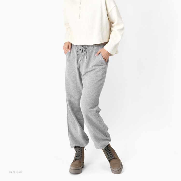 ゆるやかなスウェットパンツに合わせても、足元にほどよい存在感を与えてくれるトープのレースアップブーツ。