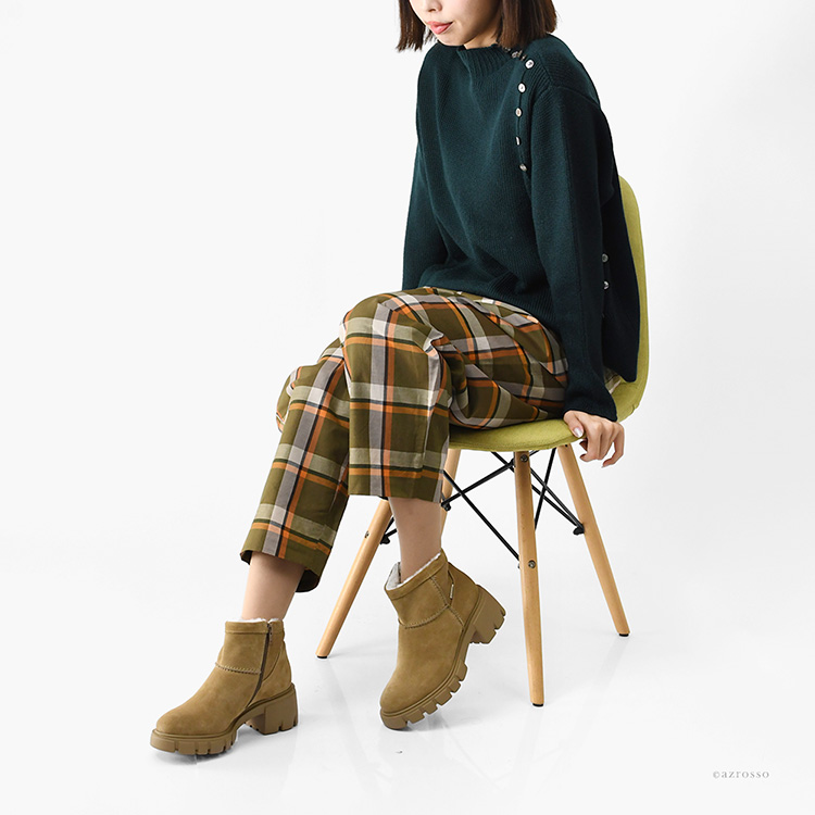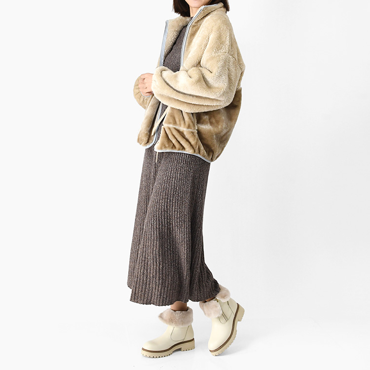 厚みのあるソールを採用しながらも、全体のバランスがよく、スタイリッシュな厚底ショートムートンブーツ。ムートンブーツには珍しい斜めに入ったサイドジップは、デザインのアクセントになるだけでなく、脱ぎ履きのしやすさにも配慮した仕様です。冬の朝、冷えた足を入れた瞬間から、ほっとするような暖かさを感じられます。