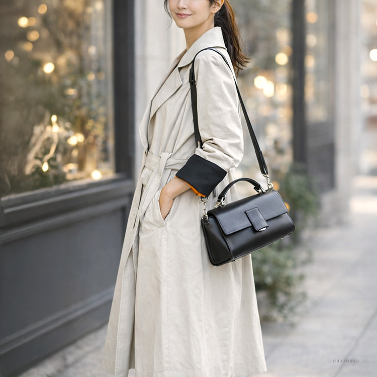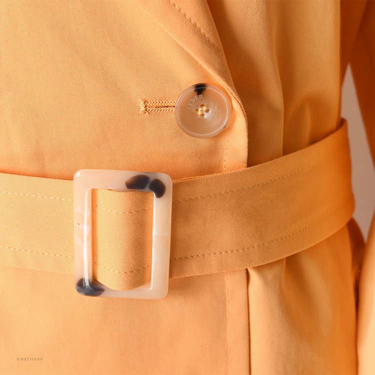 シルエットの美しさが際立つシンプルなデザインで、オンオフ問わず活躍します。特にマリンネイビーは知的で、ライトタンジェリンは華やかさがあります。レストランでの食事や観劇など、少しドレスアップしたいシーンで、女性らしさを引き立てる一着として提案します。