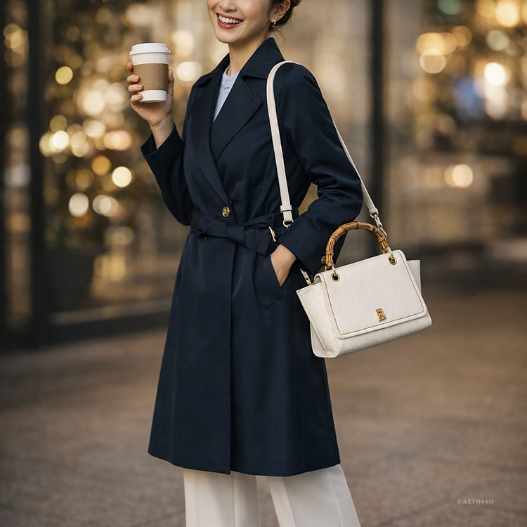 1: 名門生地の気品を纏う。 雨の日さえ味方につける、大人の正統派トレンチ
